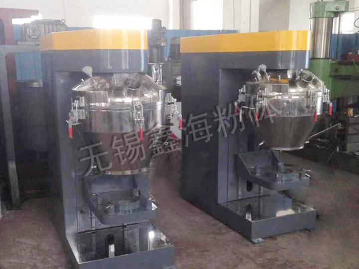 該混合機具有錐形混合腔體,并配有中心轉軸,通過轉軸的速度產生離心力將粉料推向混合腔體內壁。此時腔體的錐形形狀使粉體產生一個沿內壁向上的運動。粉體再由獨特的混合機蓋引導到混合機的中心,并回落到混合腔的底部,重新開始新一輪的混合過程。