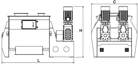 雙軸漿葉混合機裝有兩根反向旋轉(zhuǎn)的平行軸,裝有不同預設角度的漿葉。漿葉旋轉(zhuǎn)攪動物料的線速度超過零界轉(zhuǎn)速,致使物料能達到拋物線的Highest點,我們稱之為無重力點,所以我們又稱雙軸漿葉混合機為無重力混合機。